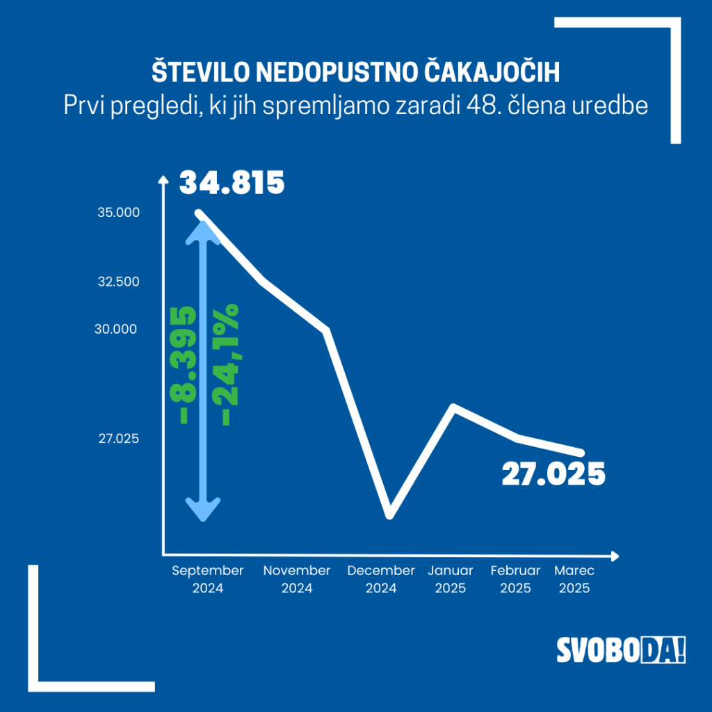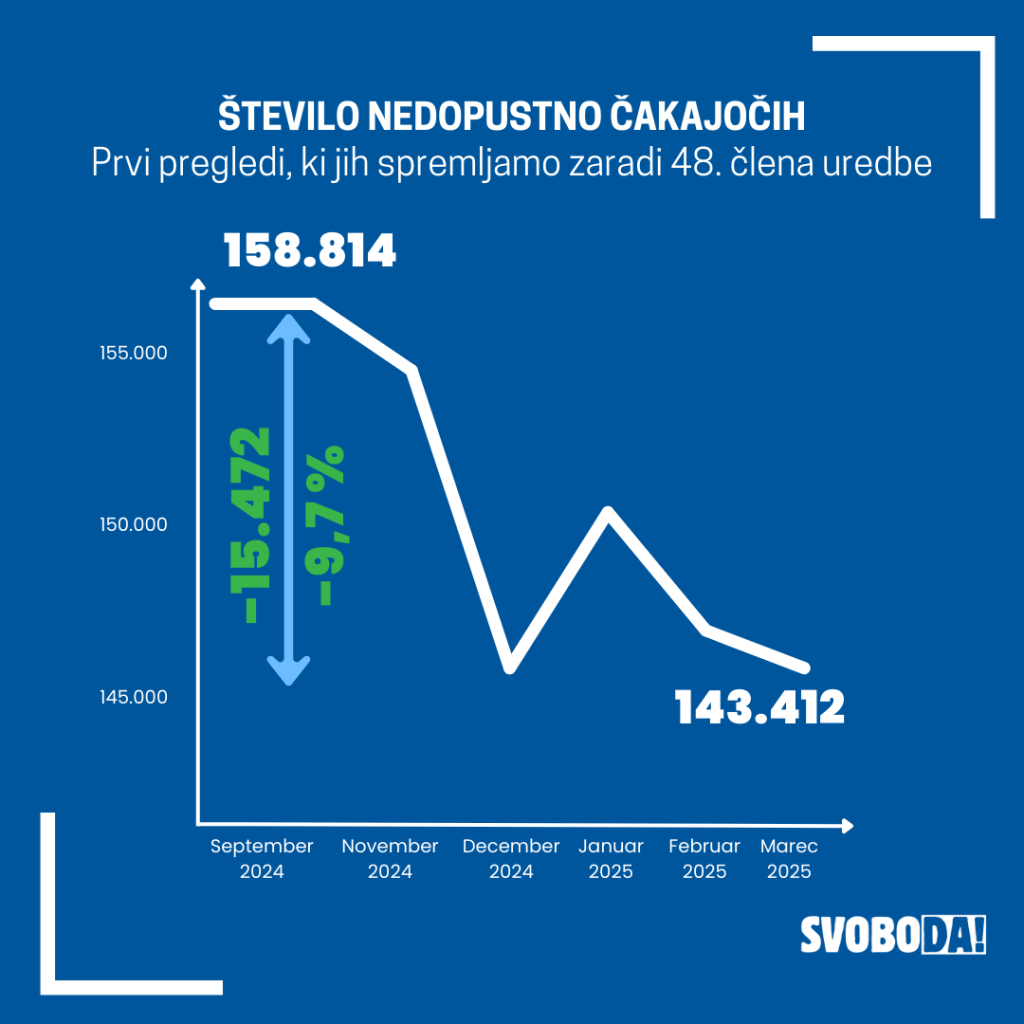 Podatki, da se je število čakajočih nad dopustno čakalno dobo zmanjšalo, vsi izhajajo iz obdobja po uveljavitvi sprememb pravilnika, zbrani so bili na podlagi iste metodologije in so torej med seboj primerljivi. Kažejo pa na padajoč trend števila nedopustno čakajočih od avgusta 2024 dalje.