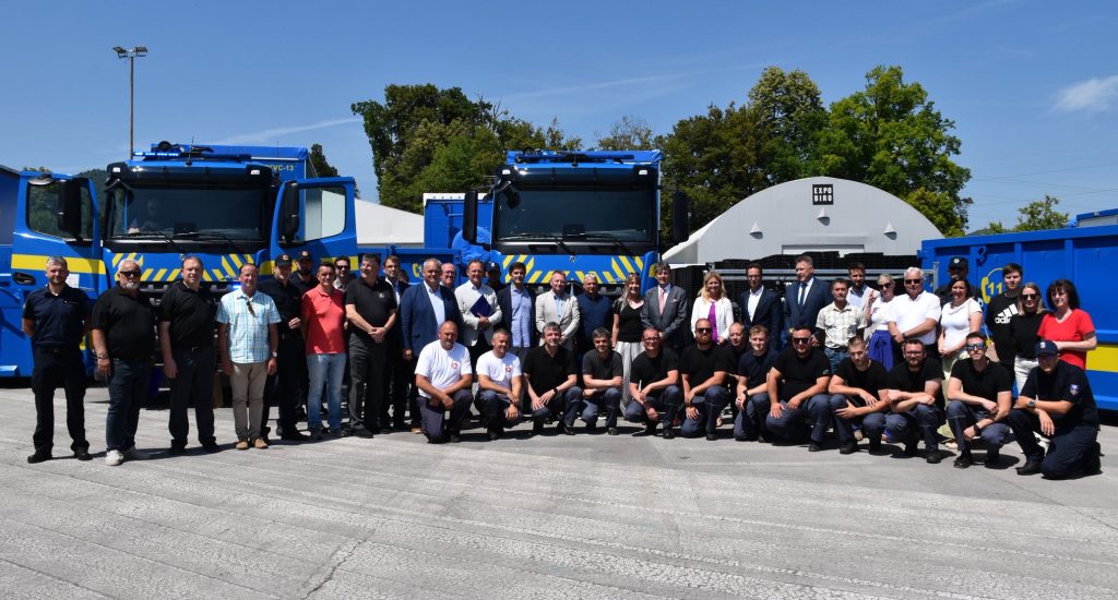 Osem slovenskih občin je slavnostno prejelo visokotehnološka specialna tovorna vozila z napredno hidravlično nadgradnjo in zmogljivo opremo za posredovanje ob naravnih nesrečah.