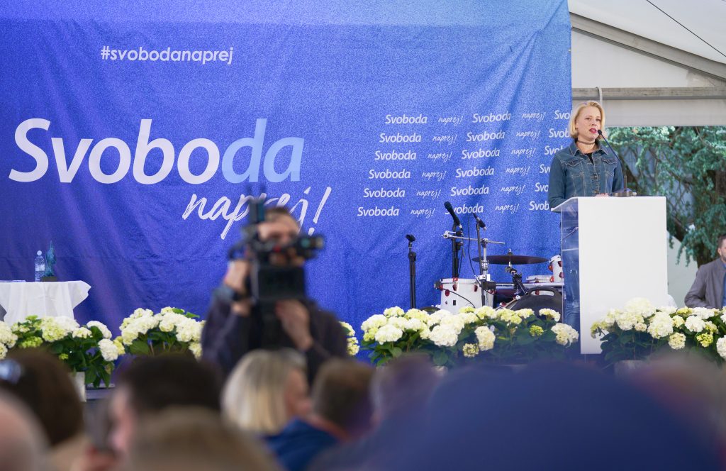 Na strankinem odru so se zvrstili tudi ostali pomembni predstavniki Svobode in poseben gost.