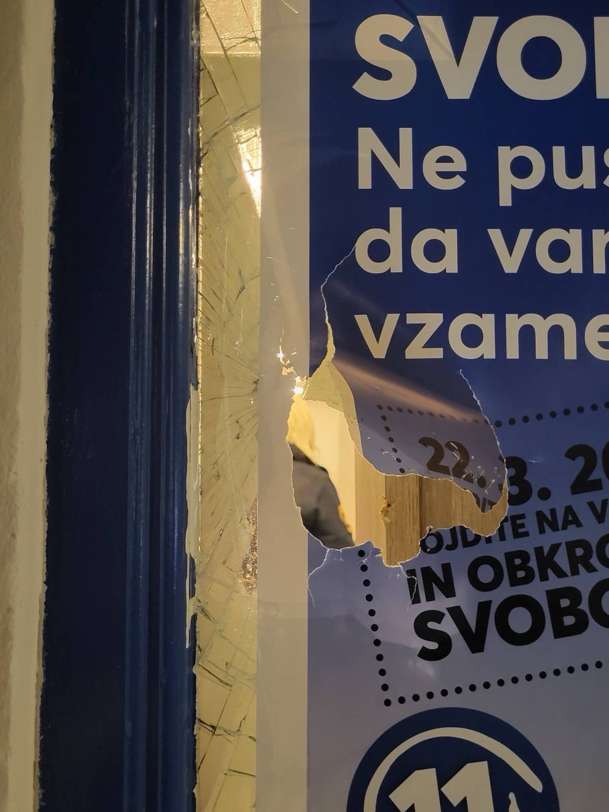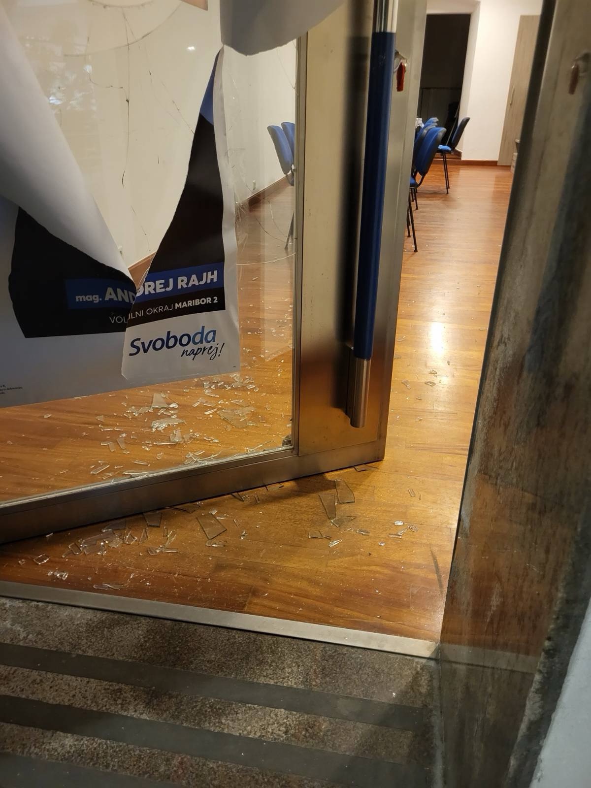 Včeraj proti večeru je eden od naših članov opazil razbite šipe poslanske pisarne Svobode v Mariboru. Nemudoma je poklical policijo, ki si je kraj dogodka tudi ogledala. V Svobodi ostro obsojamo vsakršno obliko nasilja in vandalizma.